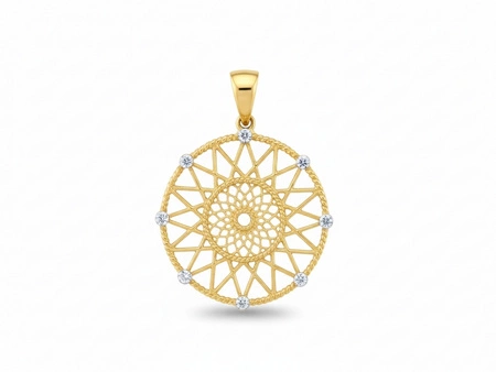 Złota zawieszka okrągła ażurowa kwiatek z białego złota