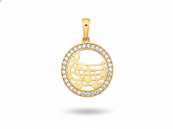 Zawieszka złota okrągła z kluczem wiolinowym i nutkami