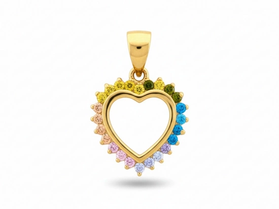 Zawieszka złote serce z kolorowymi cyrkoniami