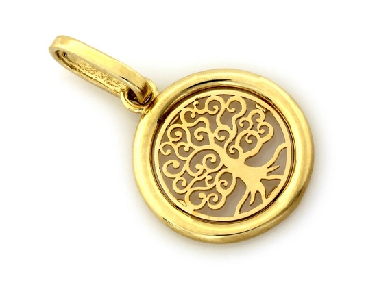 Zawieszka złota delikatna ażurowa z drzewkiem szczęścia