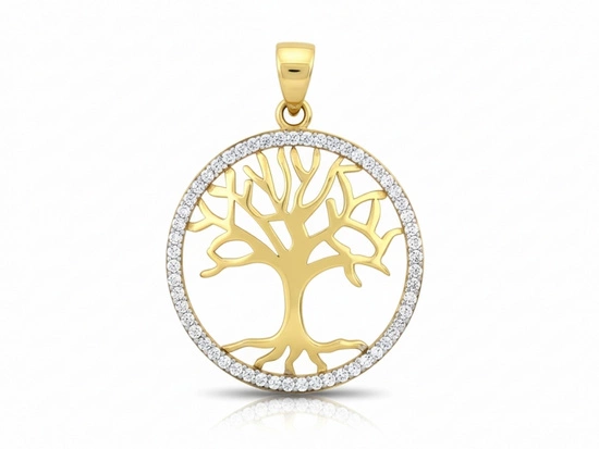 Złota zawieszka drzewko szczęścia z cyrkoniami