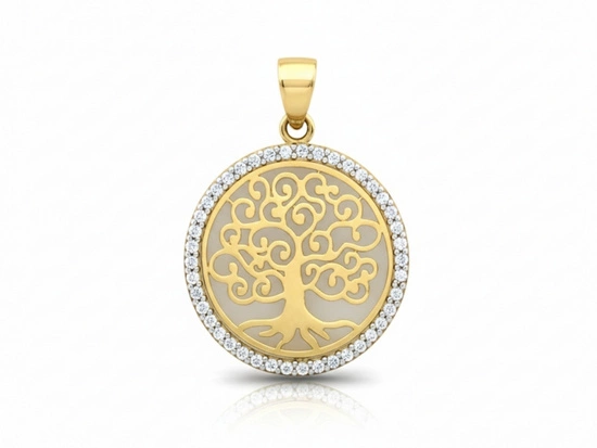 Drzewko szczęścia złota zawieszka dwukolorowa z cyrkoniami