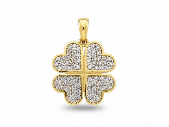 Zawieszka złota dwukolorowa koniczynka z cyrkoniami zawieszka wisior