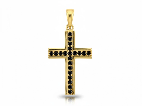 Zawieszka złoty krzyżyk z czarnymi cyrkoniami