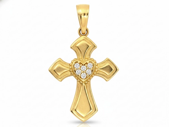 Złota zawieszka krzyżyk z sercem z cyrkoniami