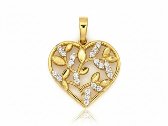 Zawieszka złota ażurowe serce z listkami gałązkami