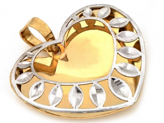 - Wysokość: 24mmSzerokość: 21.7mmMateriał: żółte i białe złotoKamienie: bez kamieniKategoria: miłośćMotyw: sercePrzeznaczenie: cena bez łańcuszka, na łańcuszekPowierzchnia: błyszcząca, rodowana, diamentowanaUwagi dodatkowe: wys. bez uchwytu 19,6mm