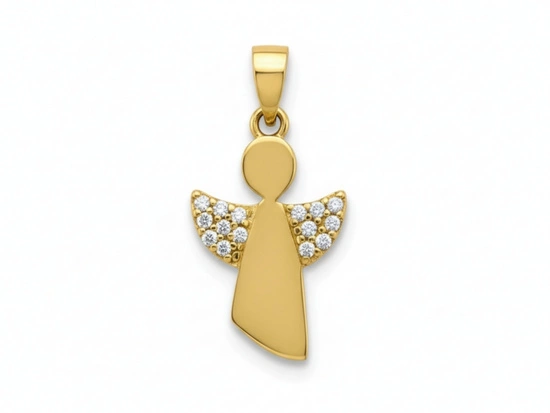Złota zawieszka aniołek z cyrkoniami