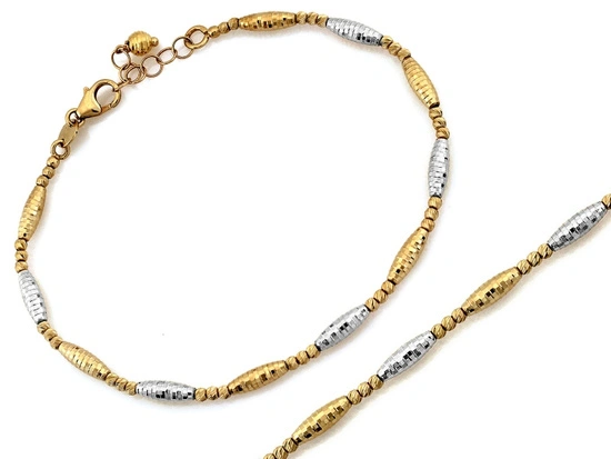 Bransoletka złota dwukolorowa z kuleczkami i podłużnymi elementami
