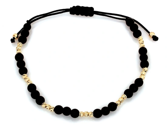 Bransoletka złota i czarne kulki na czarnym sznurku