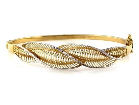 Złota sztywna bransoletka dwukolorowa ażurowa