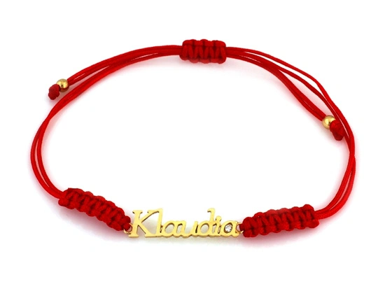 Bransoletka imię Klaudia ze złota na czerwonym sznurku