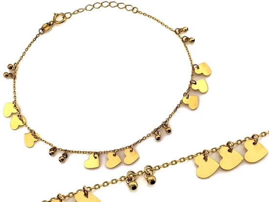 Bransoletka złota z kuleczkami i wiszącymi sercami