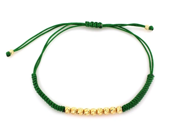 Bransoletka złota frezowane kulki na zielonym sznurku
