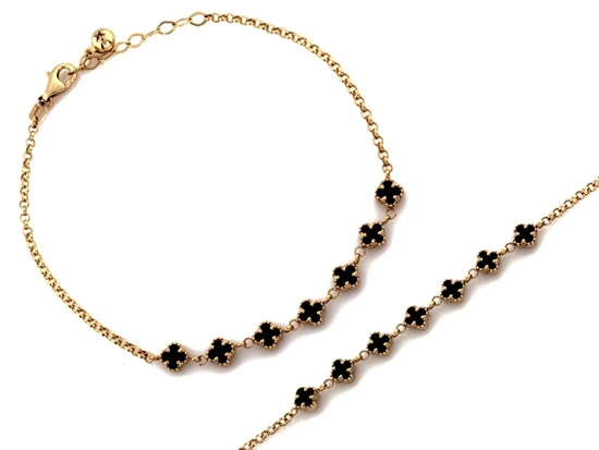 Złota bransoletka kwiatki z czarnymi kwiatkami