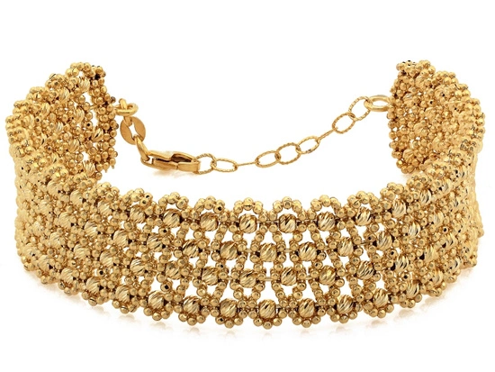 Szeroka złota bransoletka sztywna ażurowa z kulkami