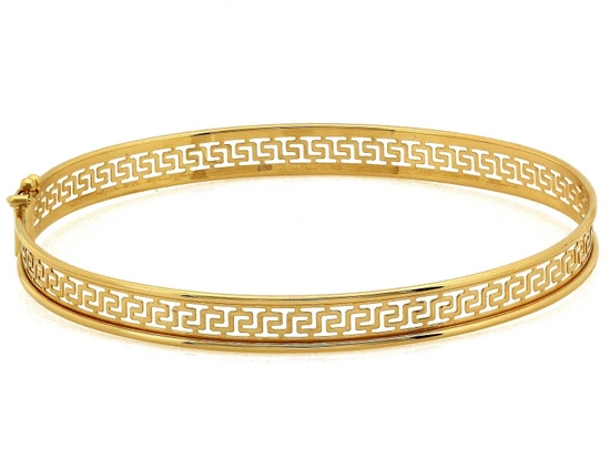 Złota sztywna bransoletka z wzorem greckim