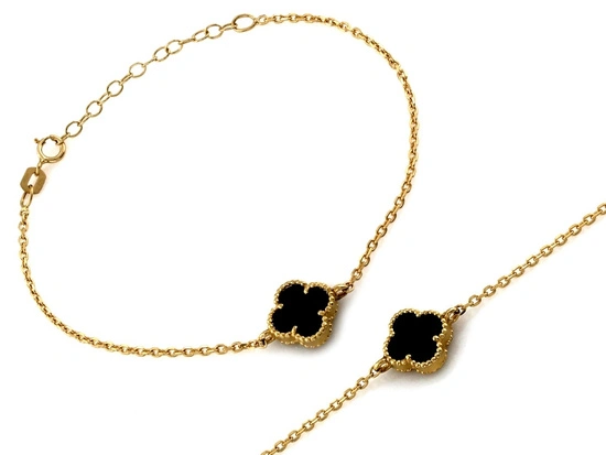 Bransoletka złota łańcuszkowa z czarnym kwiatkiem