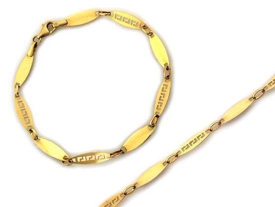 Bransoletka złota ogniwa owalne blaszki z wzorem greckim