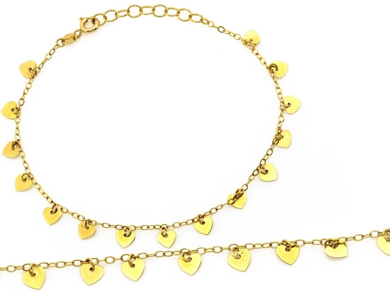 Bransoletka złota łańcuszkowa z wiszącymi sercami