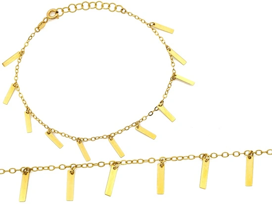Złota bransoletka z zawieszkami wiszącymi blaszkami