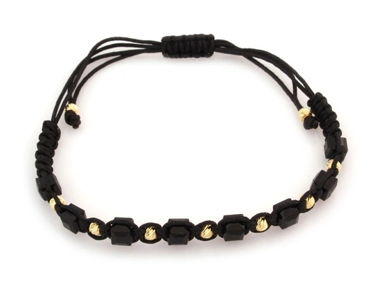 Bransoletka sznurkowa ze złotymi frezowanymi kulkami