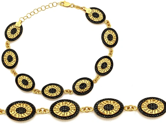 Bransoletka złota duże owalne elementy z czarnymi cyrkoniami