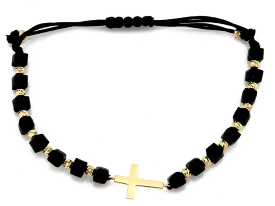 Bransoletka ze złotymi kulkami krzyżykiem i czarnymi kostkami