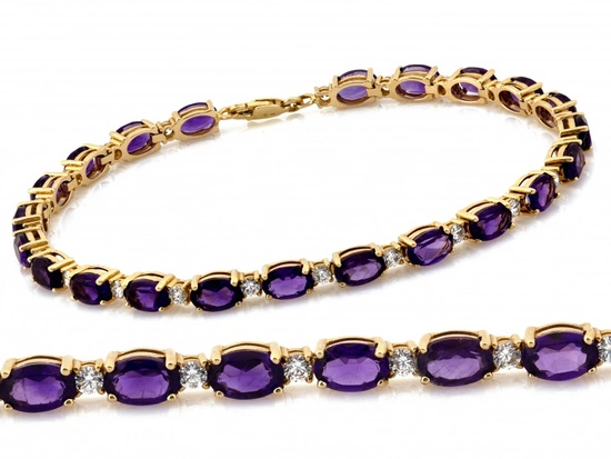 Bransoletka złota z fioletowymi owalnymi cyrkoniami
