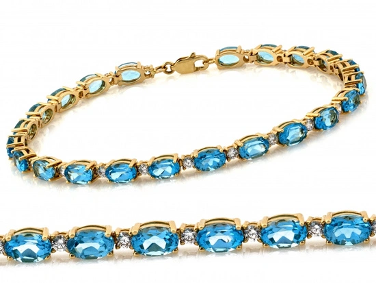 Bransoletka złota z owalnymi niebieskimi kamieniami