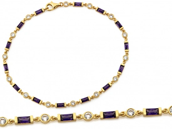 Złota delikatna bransoletka z fioletowymi prostokątnymi kamieniami
