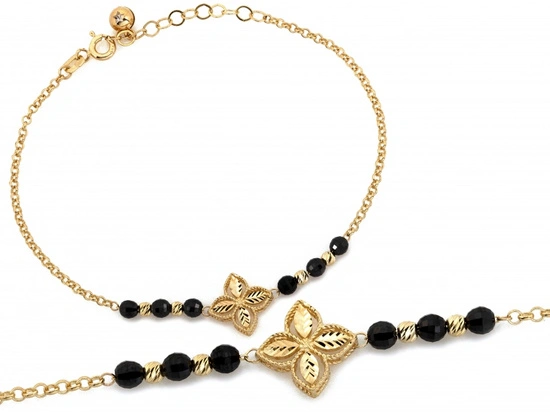 Bransoletka złota z onyksami z modnym kwiatkiem