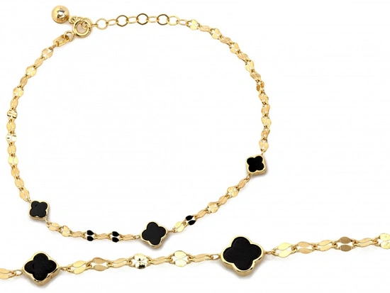 Bransoletka złota trzy czarne kwiatki koniczynki