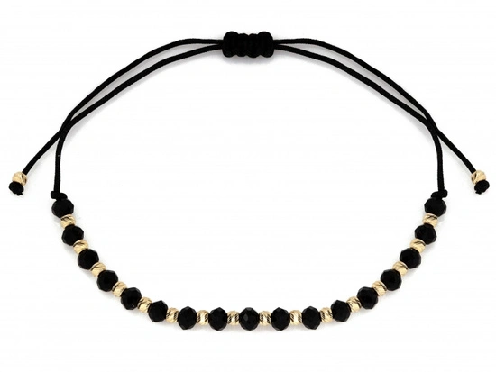 Bransoletki ze złotymi kulkami i czarnymi kamieniami na sznurku
