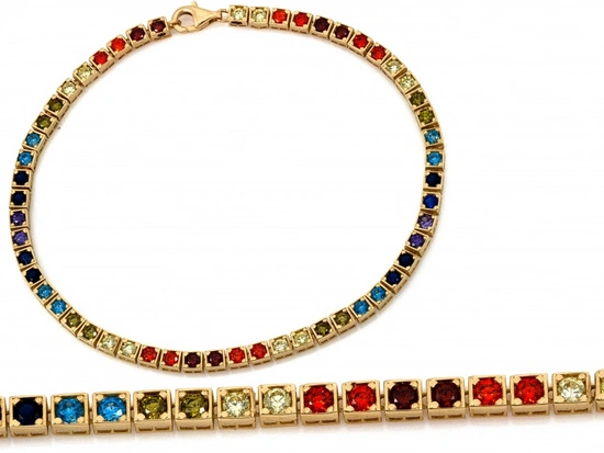 Bransoletka złota tenis z kolorowymi cyrkoniami