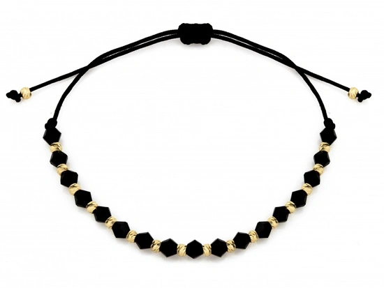 Bransoletka złote kulki i onyksy na czarnym sznurku