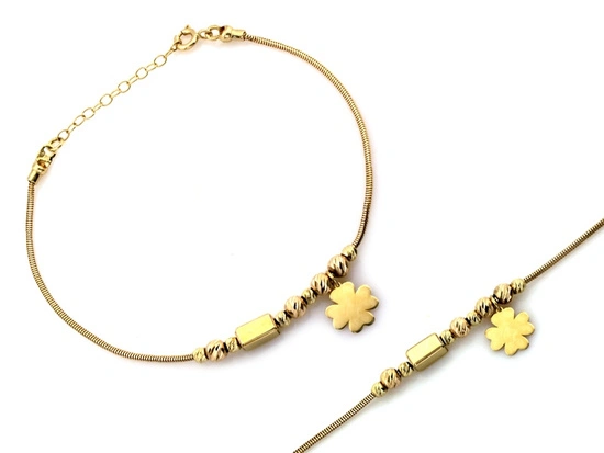 Bransoletka złota z kulkami i wiszącą koniczynką