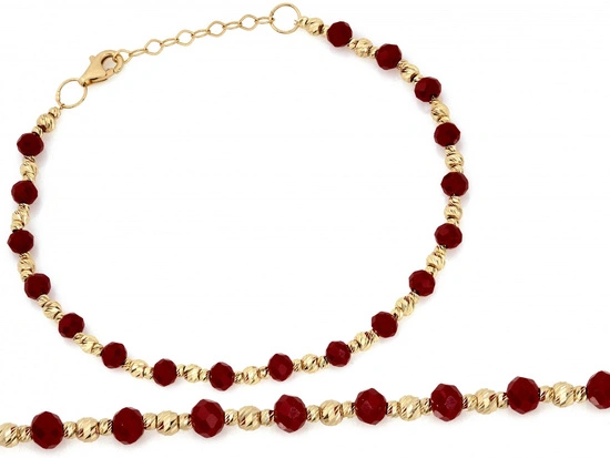 Bransoletka złota z kulkami i czerwonymi kamieniami