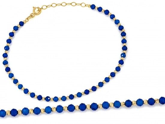 Bransoletka złota z kulkami i syntetycznymi szafirami
