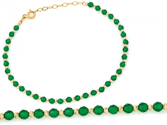 Bransoletka złota zielone szmaragdy syntetyczne
