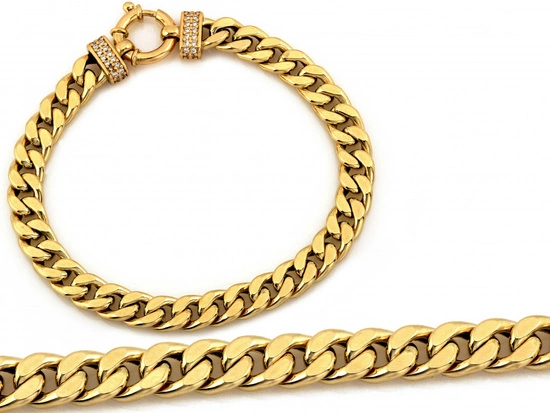 Bransoletka złota gruba pancerka z cyrkoniami okazała ekskluzywna