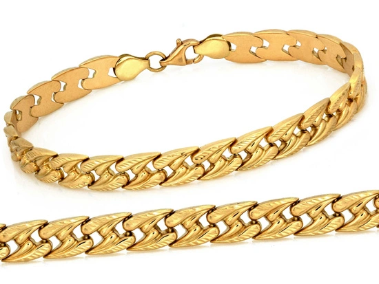Złota bransoletka szeroka stampato elementowa
