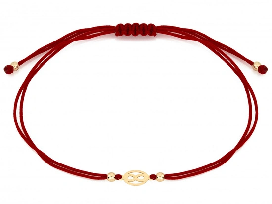 Bransoletka złota delikatna nieskończoność na czerwonym sznurku