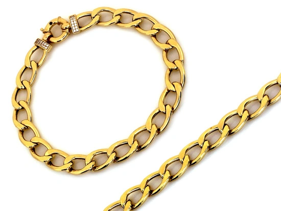 - Szerokość: 8mmMateriał: żółte złotoKamień: cyrkonieKamienie: z wieloma kamieniamiWzór: pancerka, łańcuszkowyBudowa: dmuchane