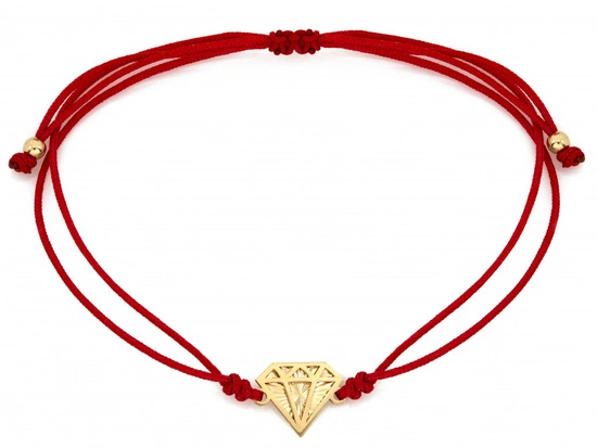 Bransoletka złota diament graficzny na czerwonym sznurku