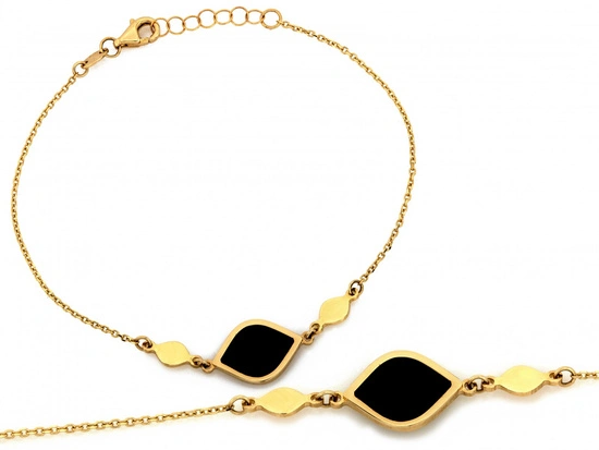 Złota bransoletka łańcuszkowa ozdoba z czarnym kamieniem syntetycznym