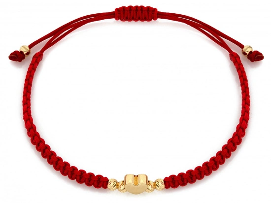 Bransoletka złota serce i kulki na czerwonym sznurku
