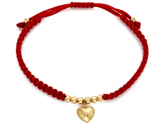 Bransoletka złota serce i kulki na czerwonym sznurku