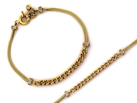 - Szerokość: 4.3mmMateriał: żółte złotoKamień: cyrkonieKamienie: z wieloma kamieniamiWzór: łańcuszkowyZapięcia: z regulacjąUwagi dodatkowe: Regulacja długości w granicach 2cm
