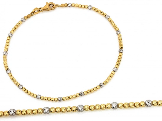 - Szerokość: 2.5mmMateriał: żółte i białe złotoKamienie: bez kamieniKategoria: z kulkamiPowierzchnia: diamentowana, rodowana, błyszcząca